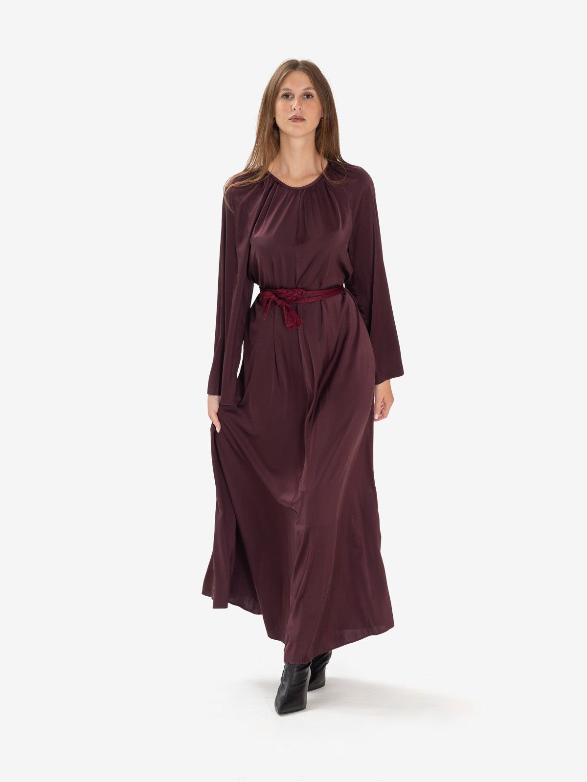 FORTE FORTE Abito lungo m/l seta con cintura intrecciata Bordeaux
