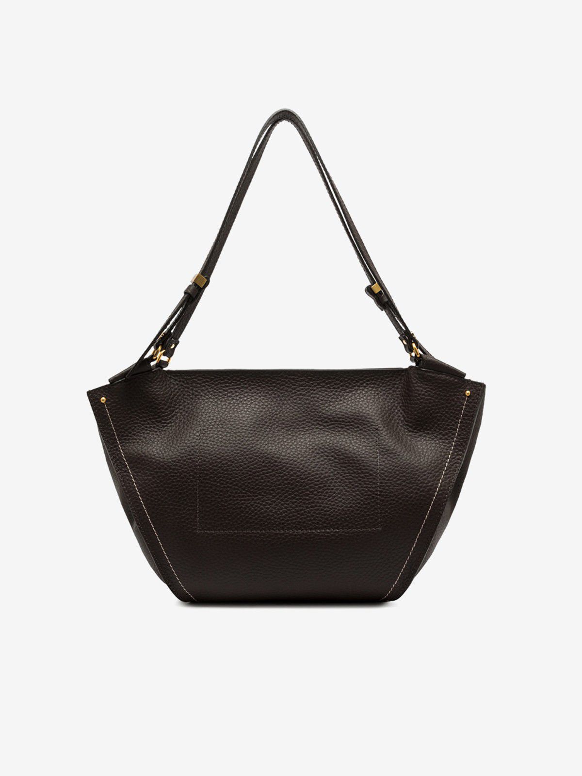 Bloom è la nuova borsa pratica e capiente, caratterizzata da una shape a tulipano. Realizzata in pelle double dalla grana maxi ed impreziosita da una cucitura decorativa a contrasto. L'accessorio è arricchito da elementi in metallo che donano alla borsa un tocco di lucentezza. Dimensioni: 50x27x18 cm.