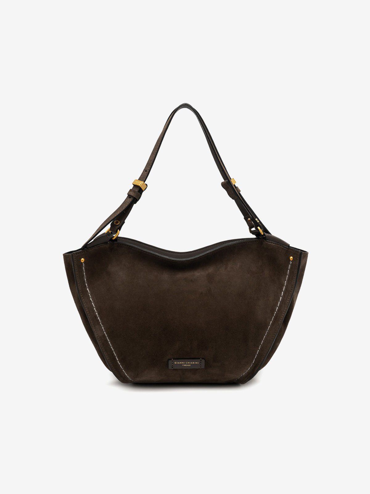 Bloom è la nuova borsa pratica e capiente, caratterizzata da una shape a tulipano. Realizzata in pelle scamosciata ed impreziosita da una cucitura decorativa a contrasto. L'accessorio è arricchito da elementi in metallo che donano alla borsa un tocco di lucentezza.