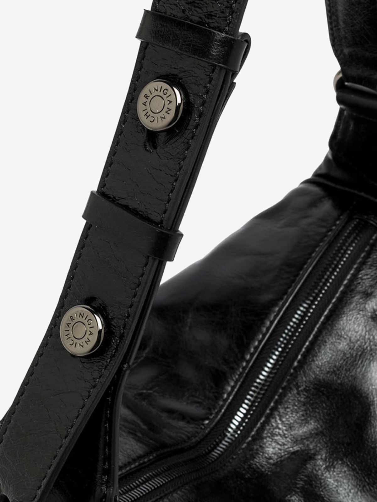Charlotte è la nuova borsa a spalla in pelle dall'effetto vintage, dal design essenziale e una morbida silhouette hobo, perfetta per donne dinamiche che amano coniugare praticità e stile. Dotata di un ampio scomparto principale con zip e tirazip in pelle con dettagli metallici, offre funzionalità senza rinunciare all'eleganza. Il manico regolabile consente una portabilità versatile, rendendola un accessorio ideale per ogni occasione. Dimensioni: 30x21x12,5 cm.
