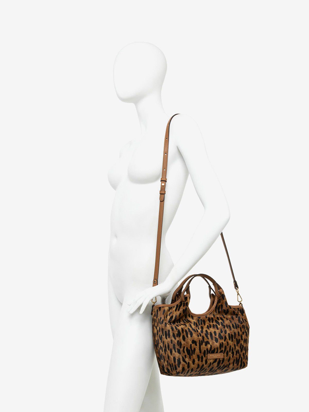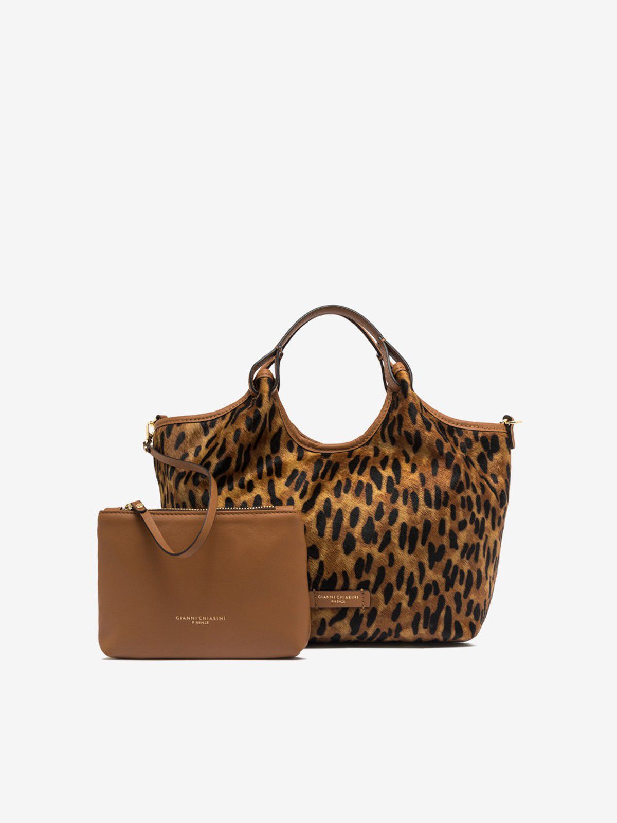 L'icona del brand DUA è realizzata in pelle effetto cavallino. Monoscomparto sfoderato, dotato di una pochette in pelle liscia tinta unita con chiusura a zip. Pratica ed essenziale è la borsa perfetta per esaltare il look di ogni donna. Portabilità a mano o crossbody, grazie alla tracolla di servizio di cui è dotata. Dimensioni: 24x27x12 cm.