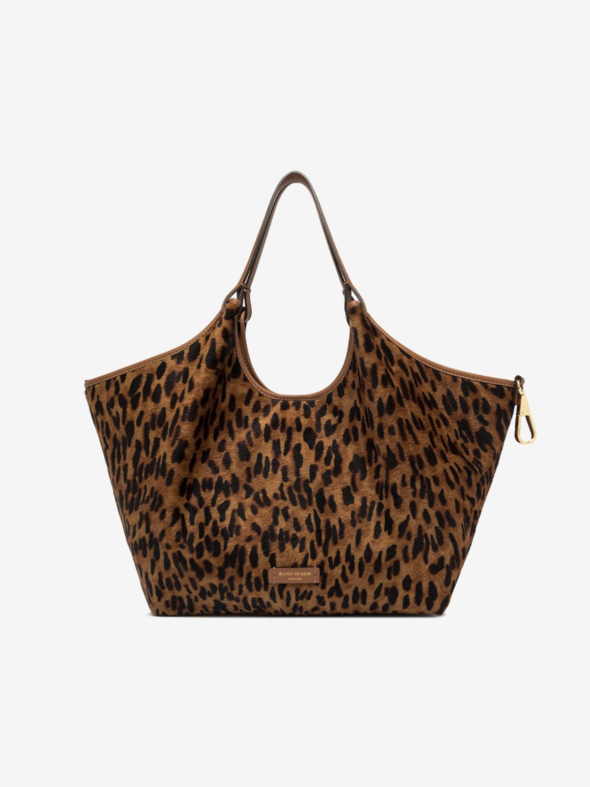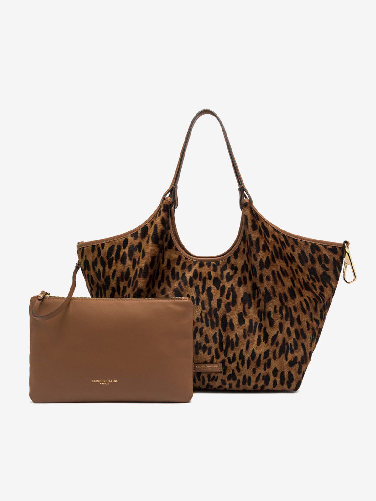 L'icona del brand DUA è realizzata in pelle effetto cavallino. Monoscomparto sfoderato, dotato di una pochette in pelle liscia tinta unita con chiusura a zip. Pratica ed essenziale è la borsa perfetta per esaltare il look di ogni donna. Portabilità a spalla. Dimensioni: 38x34x16 cm.