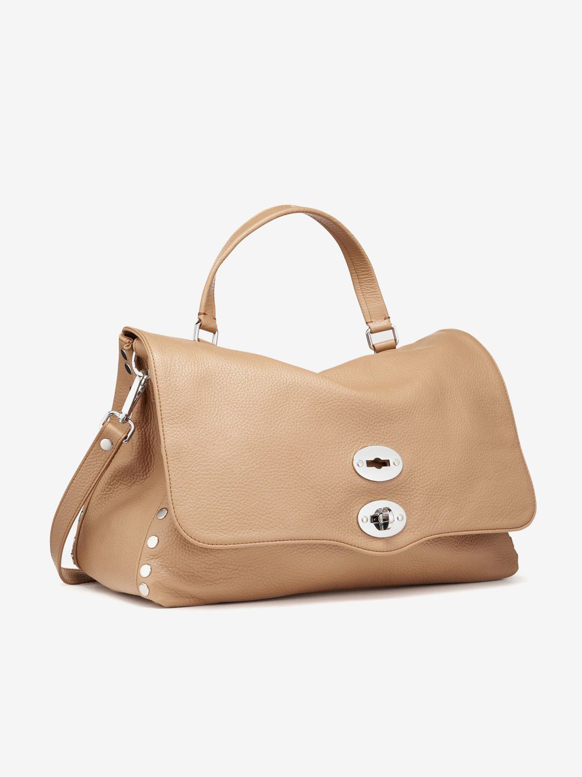 Lasciati conquistare dalla classe senza tempo di questa borsa Postina®. Realizzata in pelle martellata, morbida ma estremamente resistente, è la compagna ideale da sfoggiare ogni giorno. La silhouette è illuminata dalla doppia chiusura a girello e dalle borchie laterali. Lo spazio interno foderato è dotato di una pratica tasca dove riporre comodamente i tuoi effetti personali. Grazie alla tracolla in pelle regolabile puoi indossarla come preferisci: a mano, a spalla o crossbody.