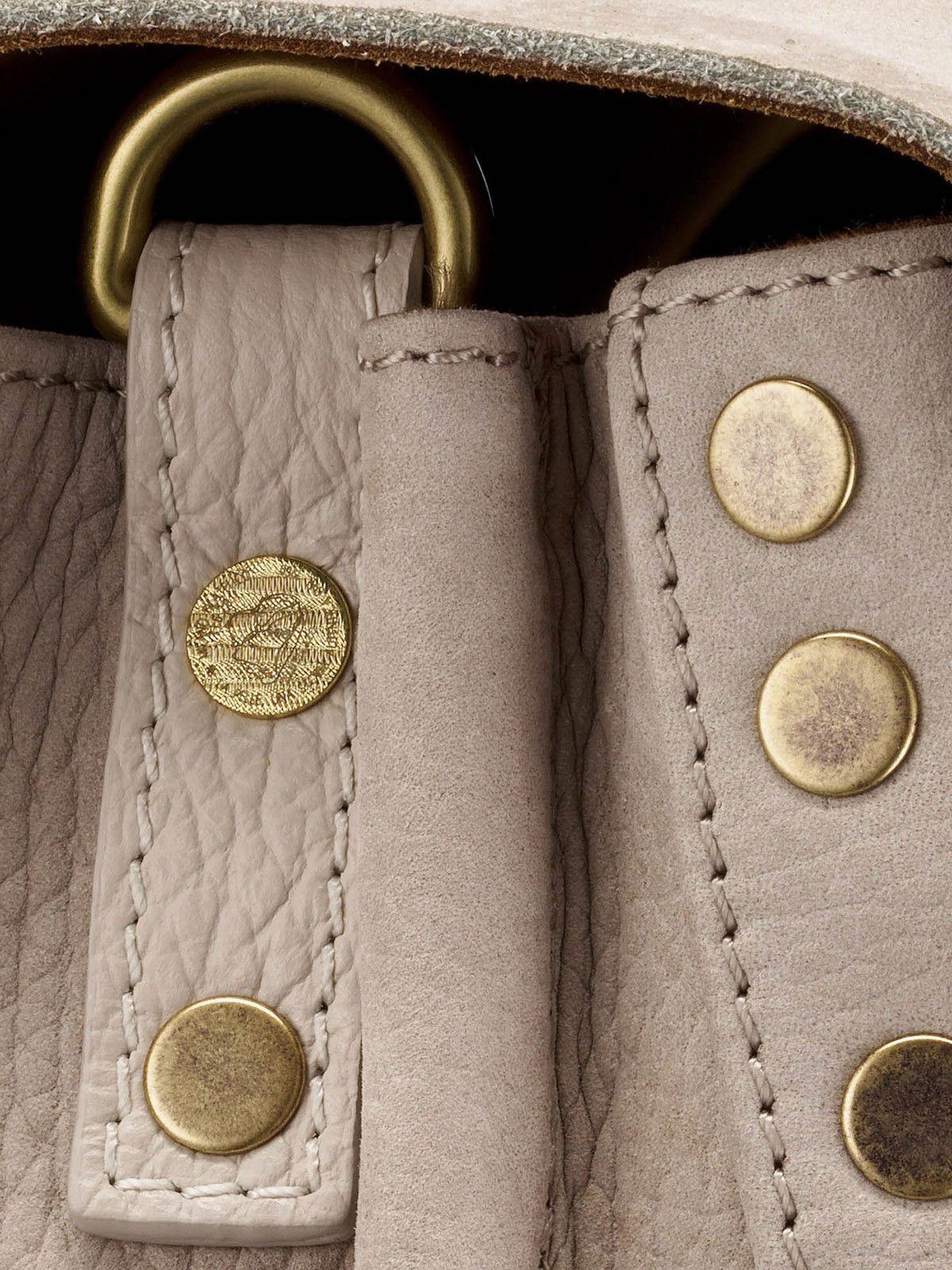 DETTAGLI Esterno 100% pelle bovina + interno 50% poliammide 50% poliuretano/ 100% cotone"; larghezza 30 cm altezza 18 cm profondità 15 cm luce del manico 11 cm