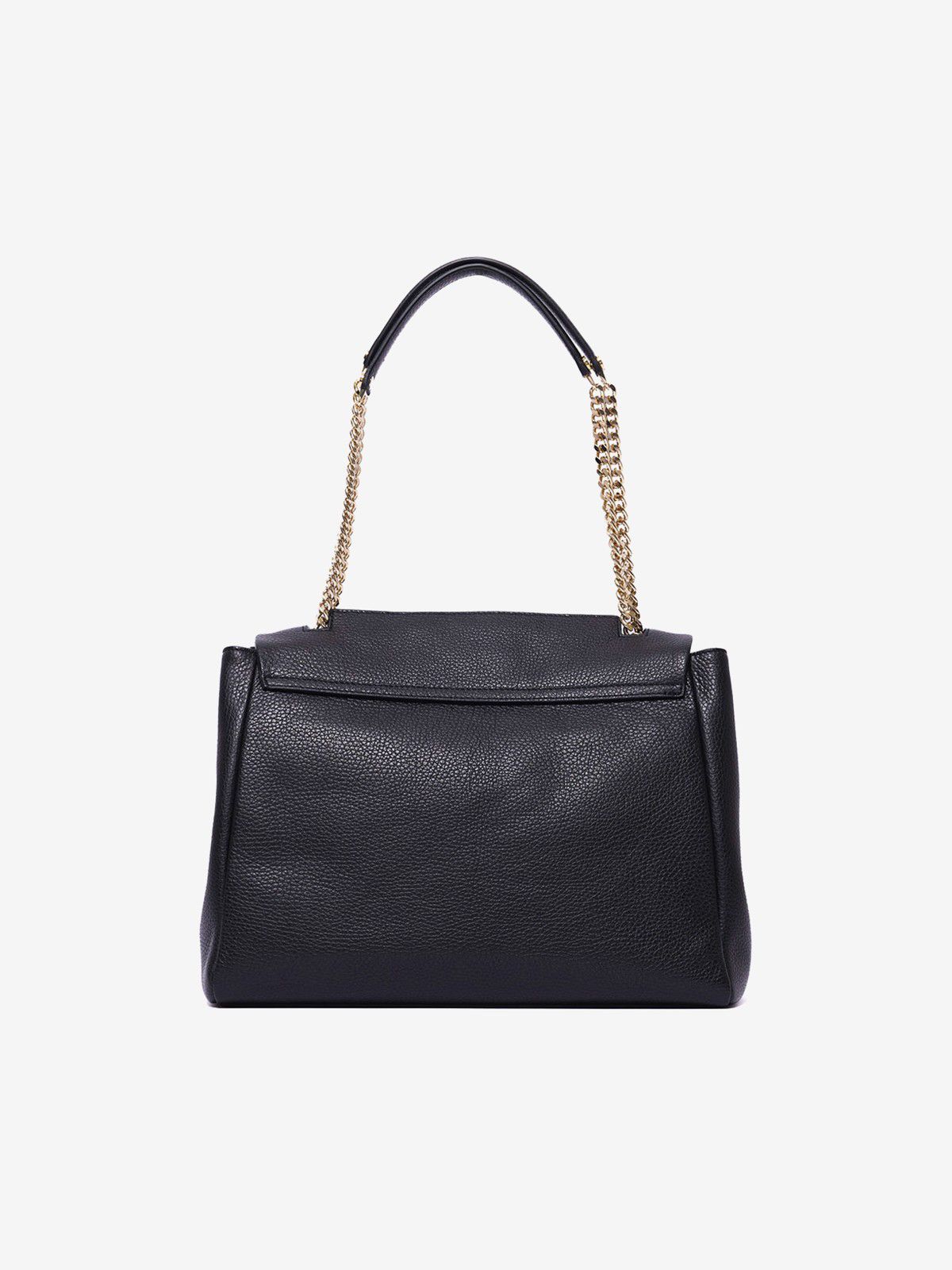 Funzionalità: apertura a scomparsa sulla parte alta della patta, manici a spalla in catena con spallaccio in pelle