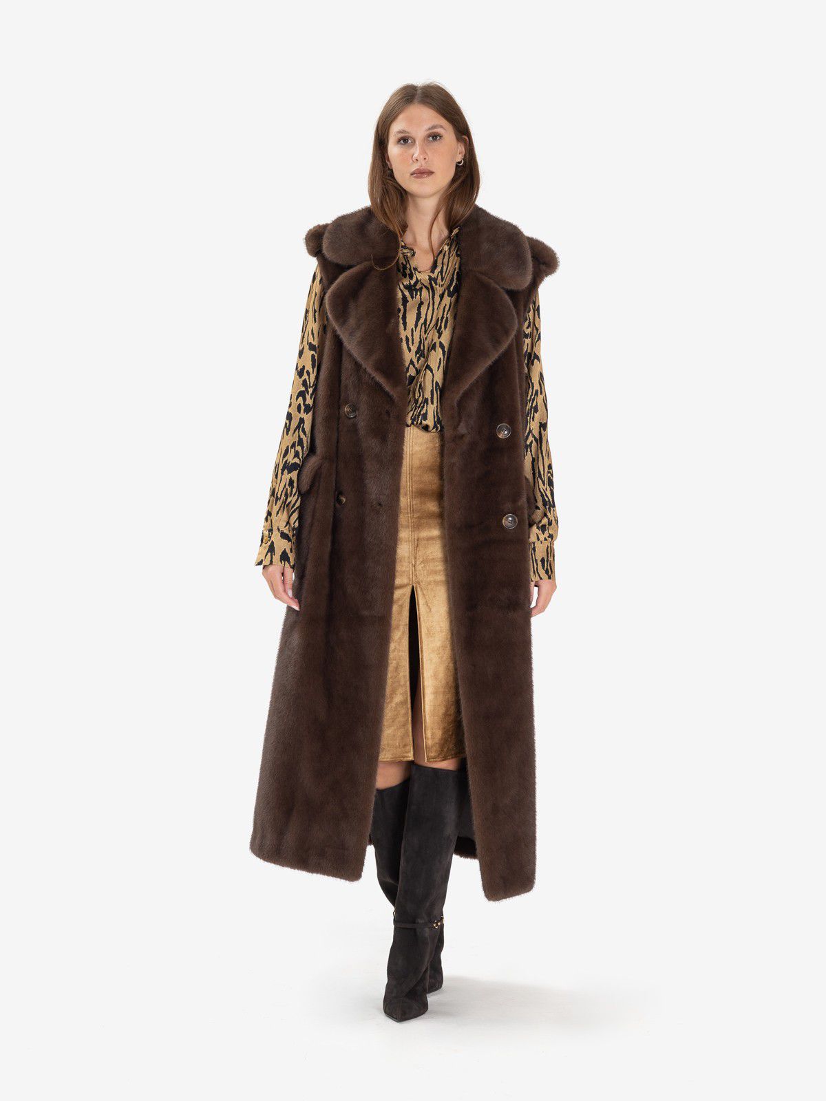P.A.R.O.S.H. Gilet ecopelliccia lungo con cinta Marrone