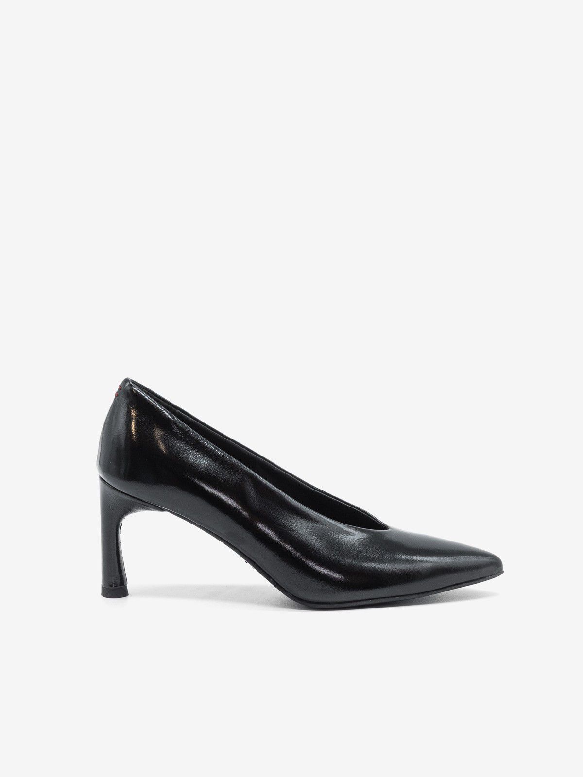 Decolletè di Halmanera in vernicetta nera, con altezza tacco 7,5 cm.