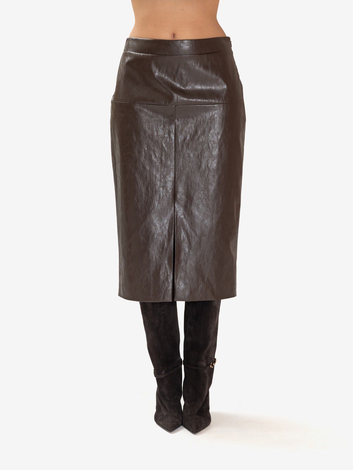 FEDERICA TOSI Gonna longuette ecopelle Marrone