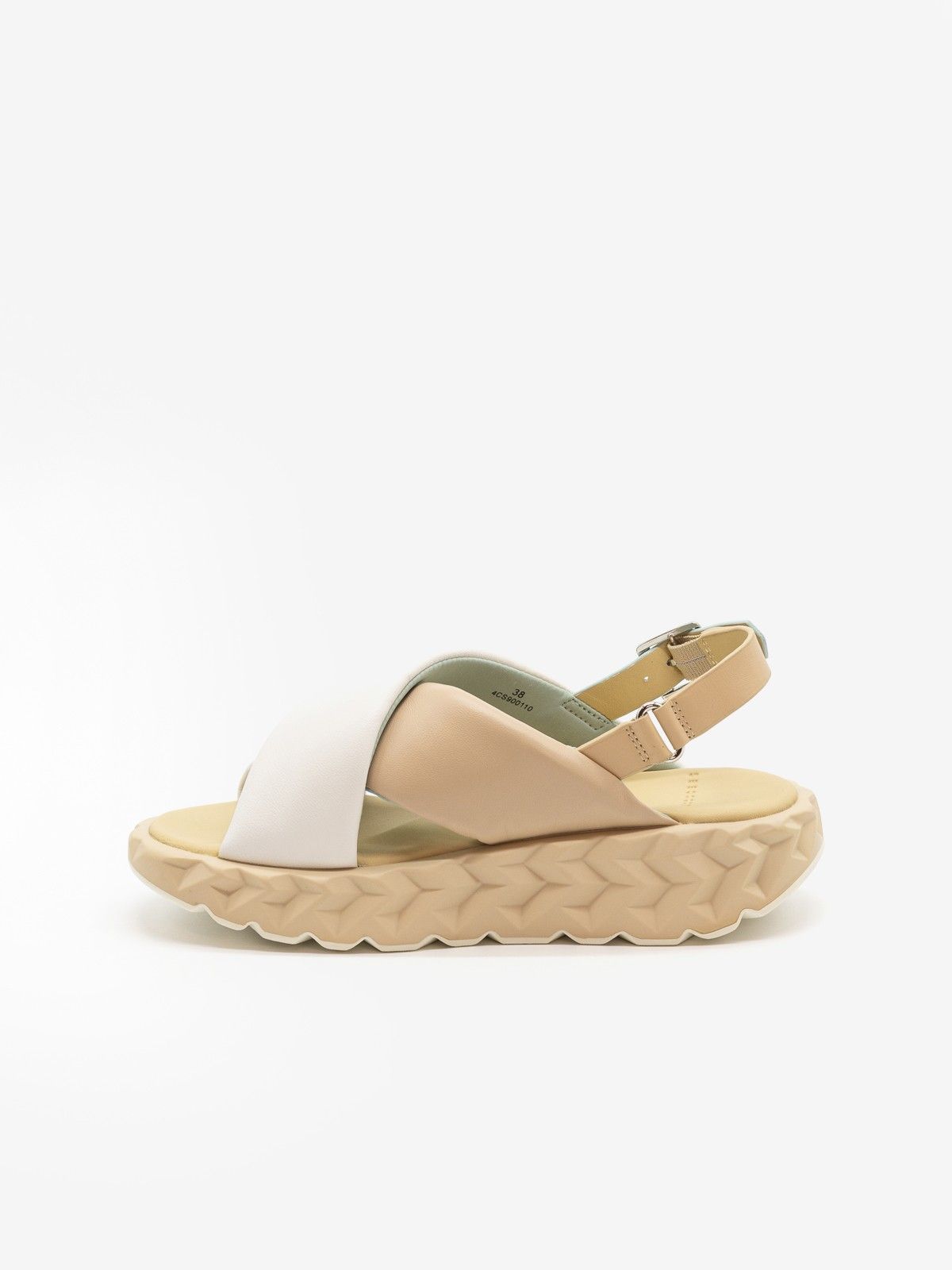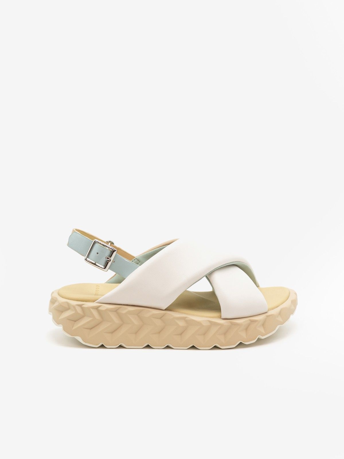 Sandalo by 4CCCCEES in morbida pelle di colore latte. Braccialetto sul tallone regolabile e fondo extra light in gomma.