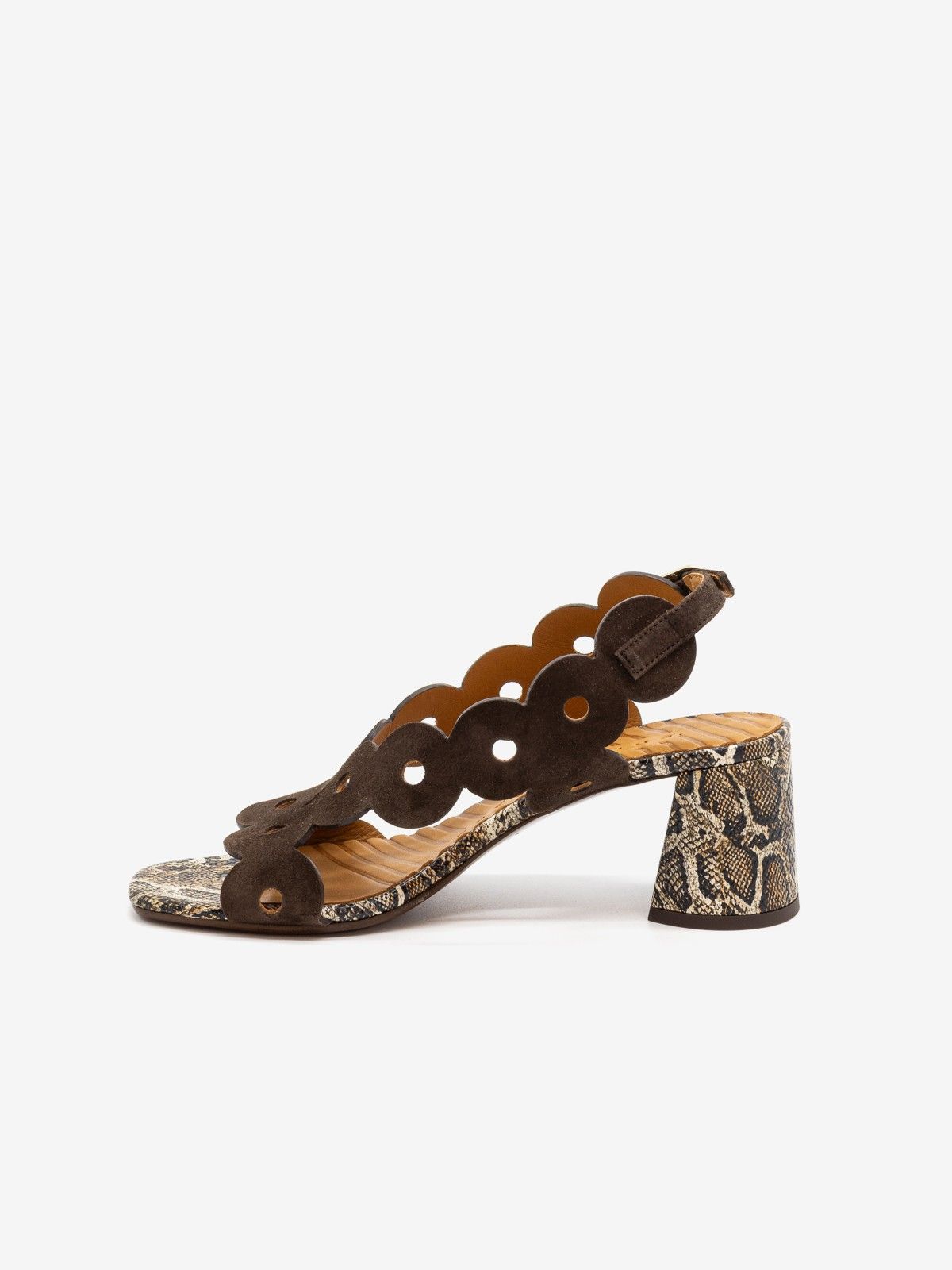 CHIE MIHARA Sandalo tc 5 cm pitonato + camoscio Testa di moro
