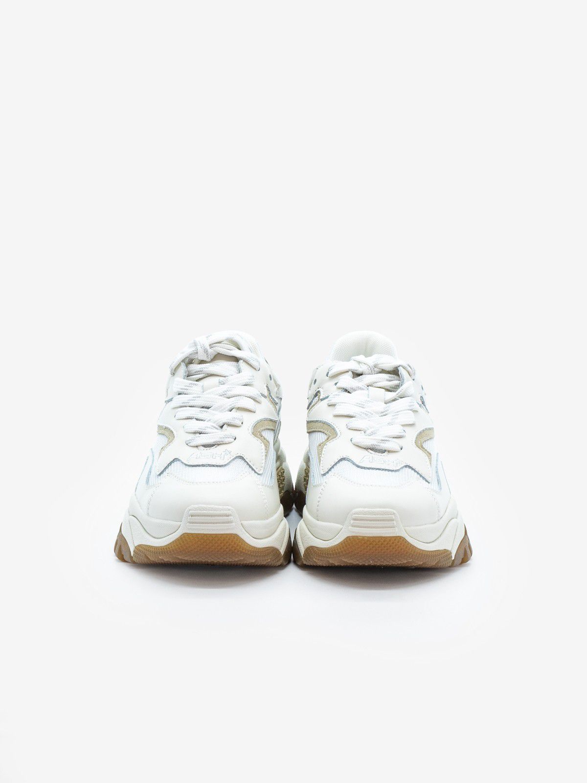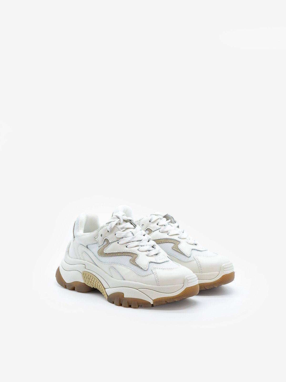 Sneaker stringata ADDICT in morbida pelle e tessuto. Inserti in pelle color bianco/gesso, logo sul tallone e fondo in gomma .