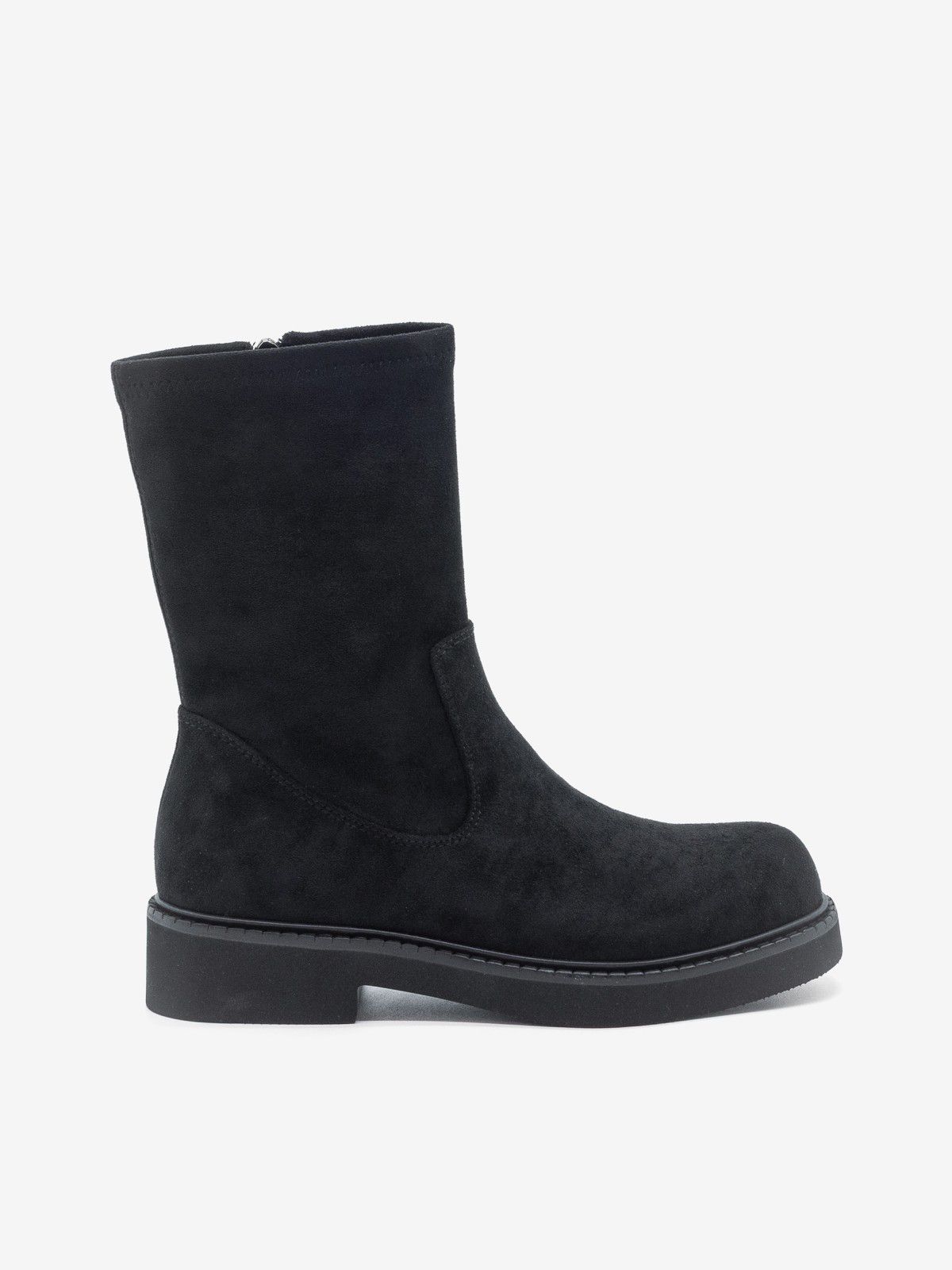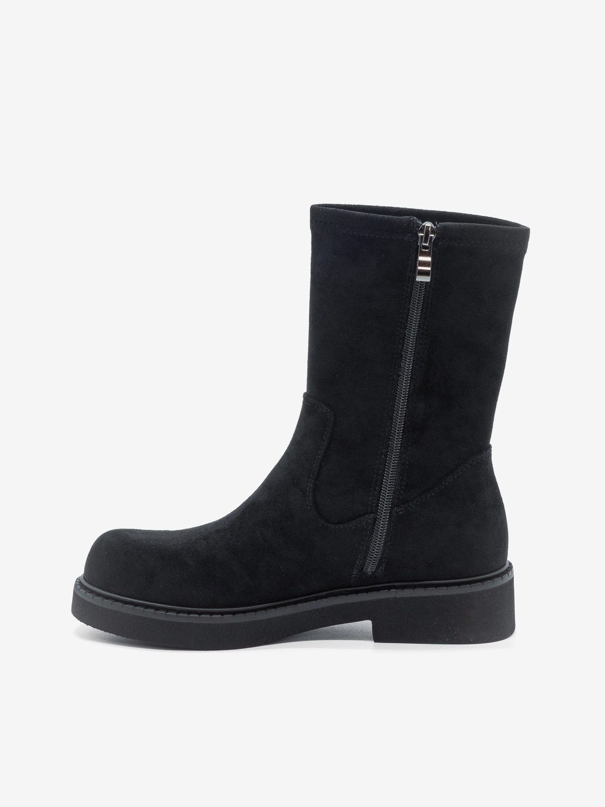 Beatles in camoscio nero, fondo gomma con zip laterale.
