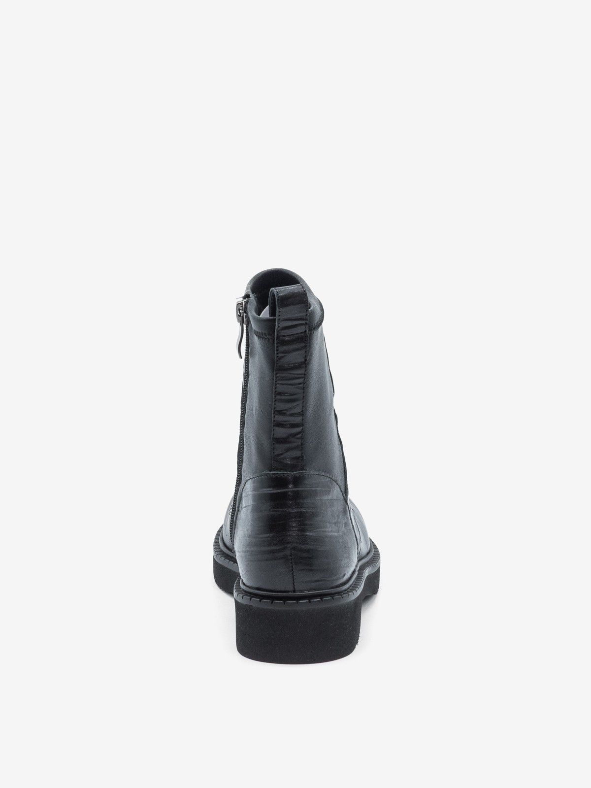 Anfibio in pelle nera con effetto plissè, dotato di cerniera laterale.