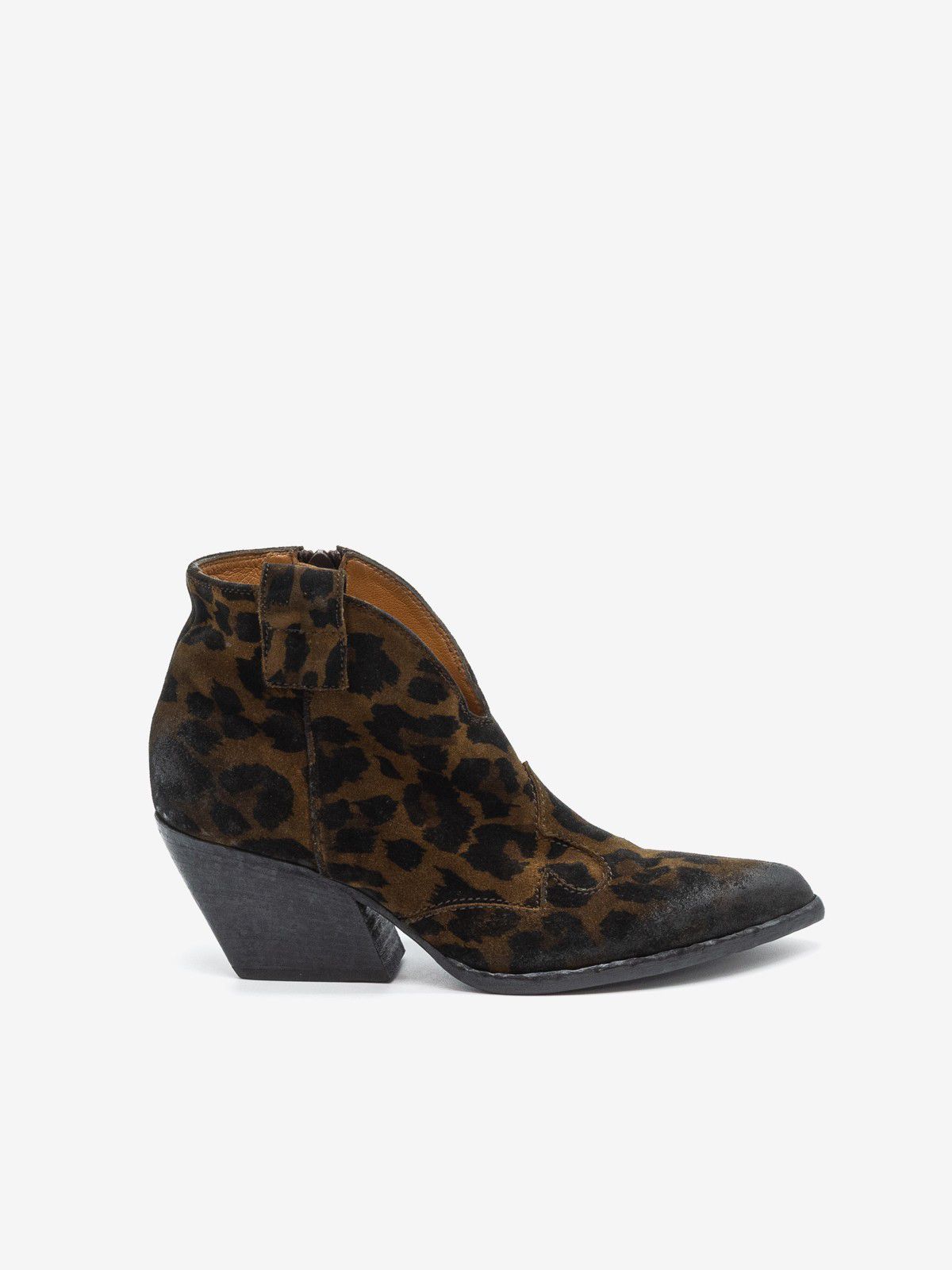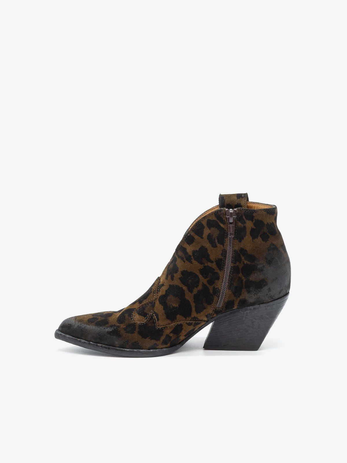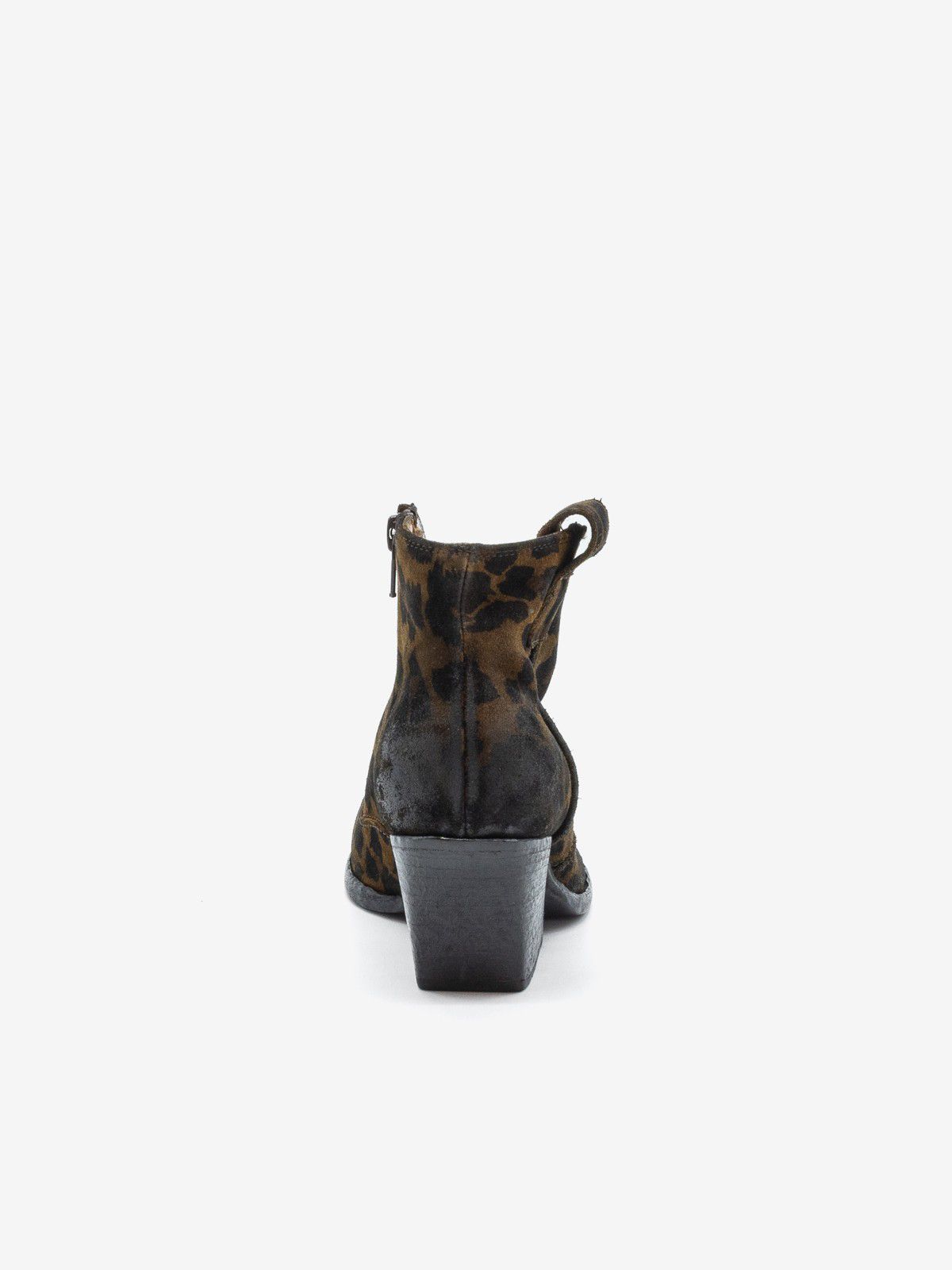 Una variante scura del tronchetto texano in pelle Leopard lavorata Vintage, che mantiene tutte le caratteristiche dei tronchetti firmati Elena Iachi.